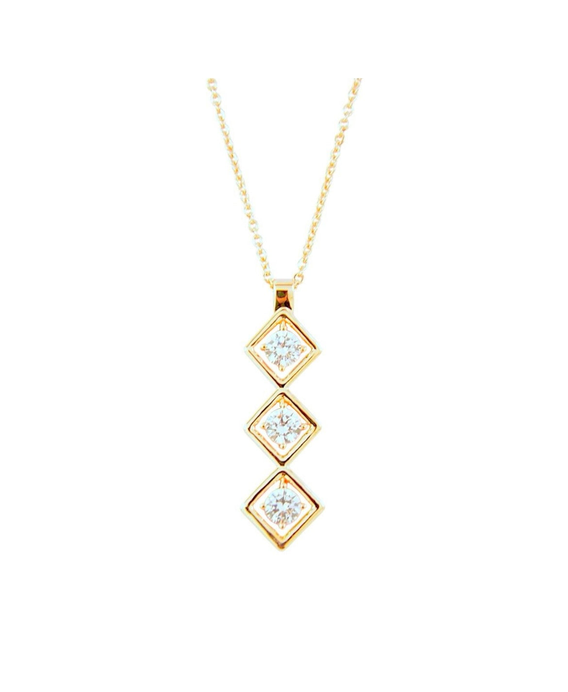 Rose gold plated 3 offset square drop pendant with brilliant cut individually set clear crystals. Stylish and elegant.